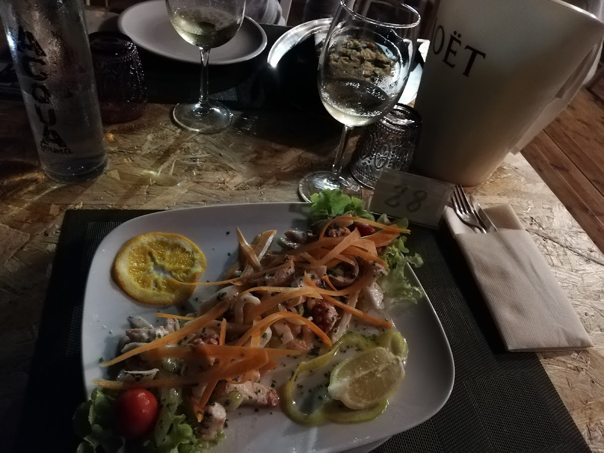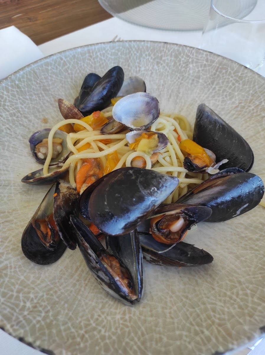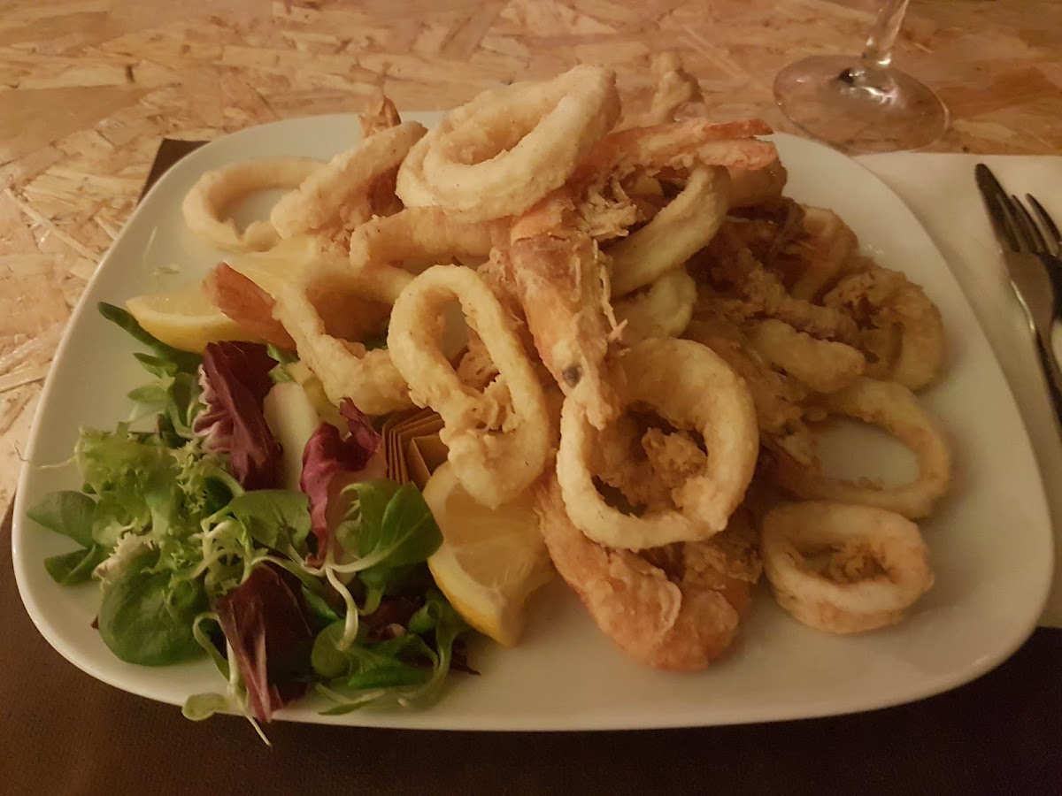 Sunday lunchtime so no burgers or pizza but oysters and mussels, Fritto misto and nice pasta. Friendly staff forgiving of our poor Italian. Plenty off Italians eating in this small restaurant overlooking the Adriatic.
